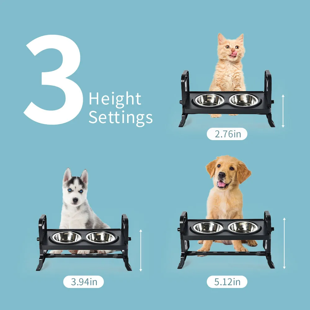 - Adjustable Height Options: This Adjustable Elevated Dog Bowl set offers three different height settings, allowing you to adjust the bowl’s position to suit your pet’s size. Whether your pet is a puppy, adult, or senior, you can find the perfect height for comfortable feeding.
