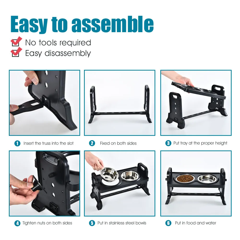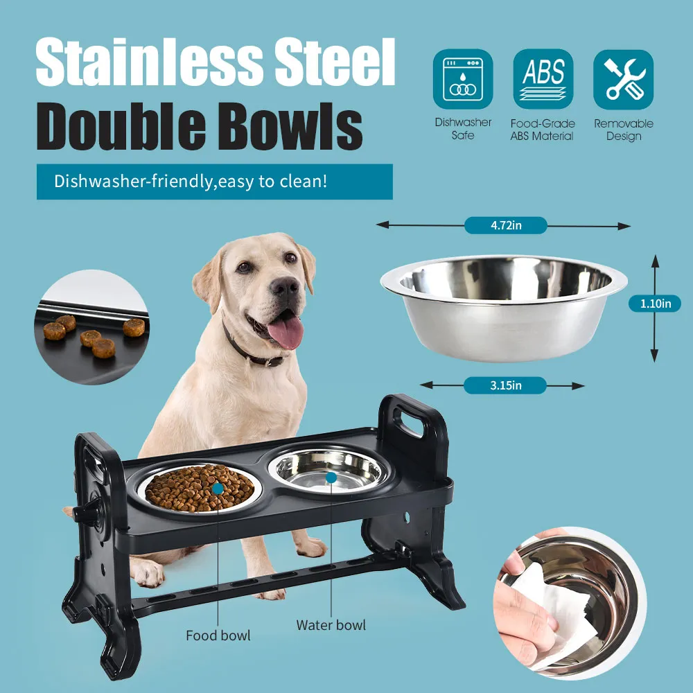 The Adjustable Elevated Dog Bowl is a versatile and ergonomic feeding solution featuring dual stainless steel bowls with adjustable heights, designed to enhance your pet’s dining experience while ensuring convenience and durability.