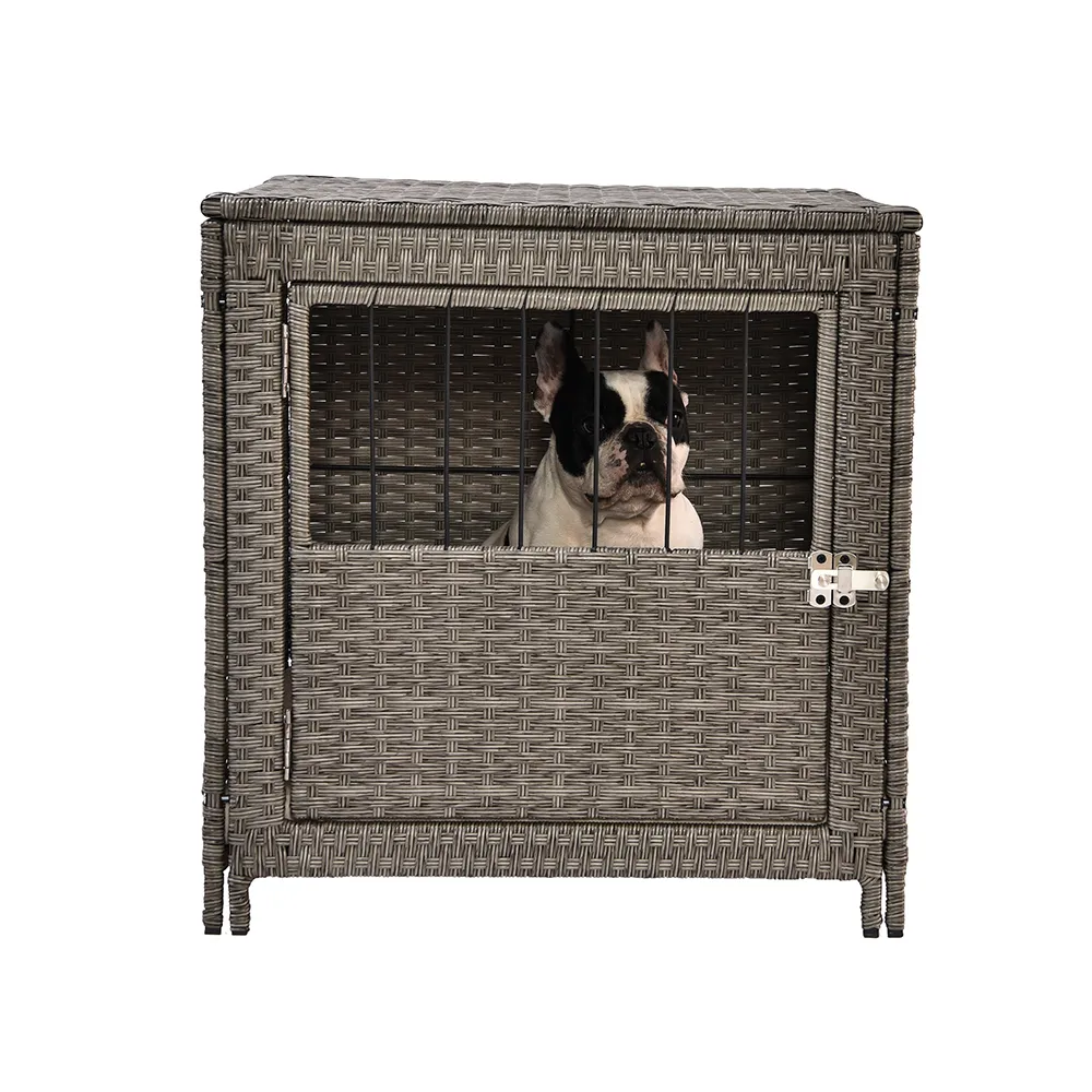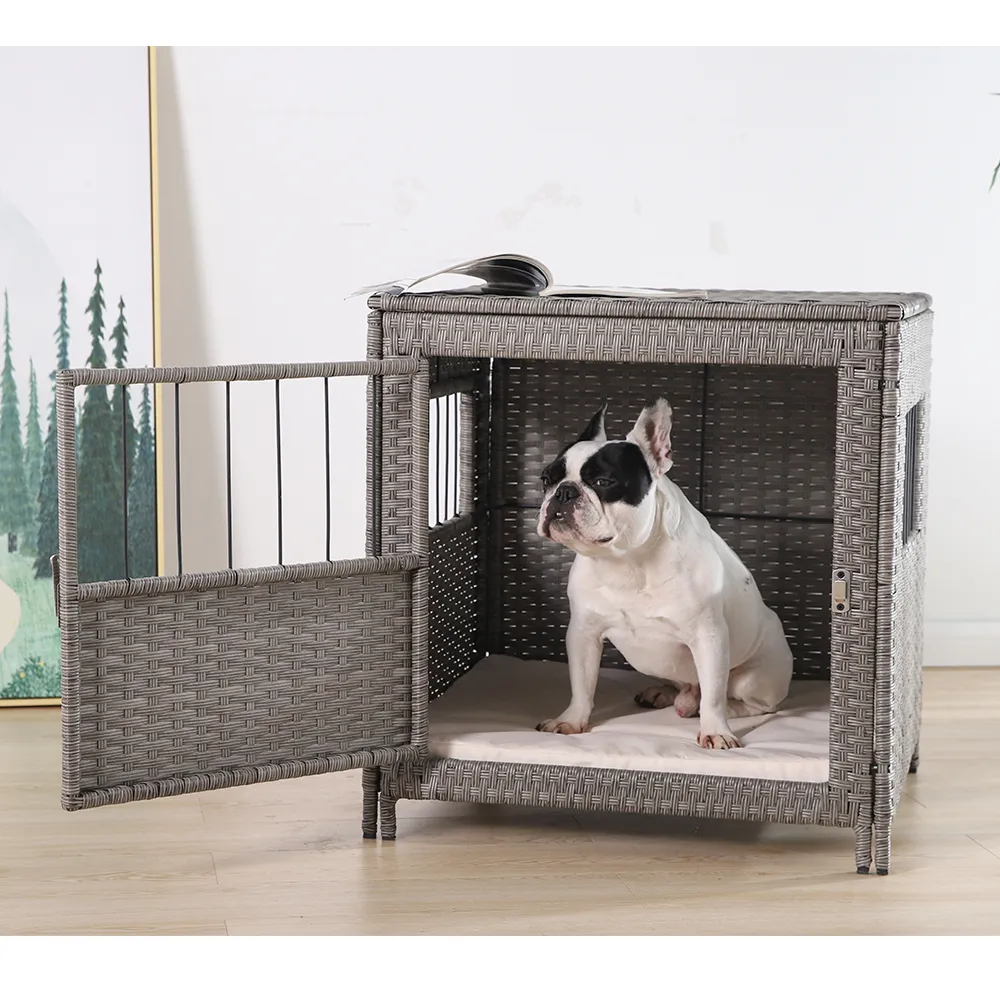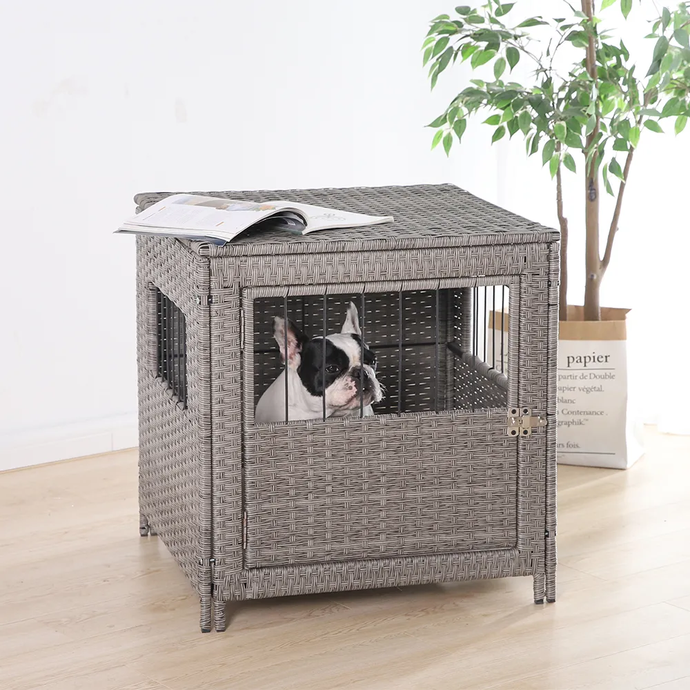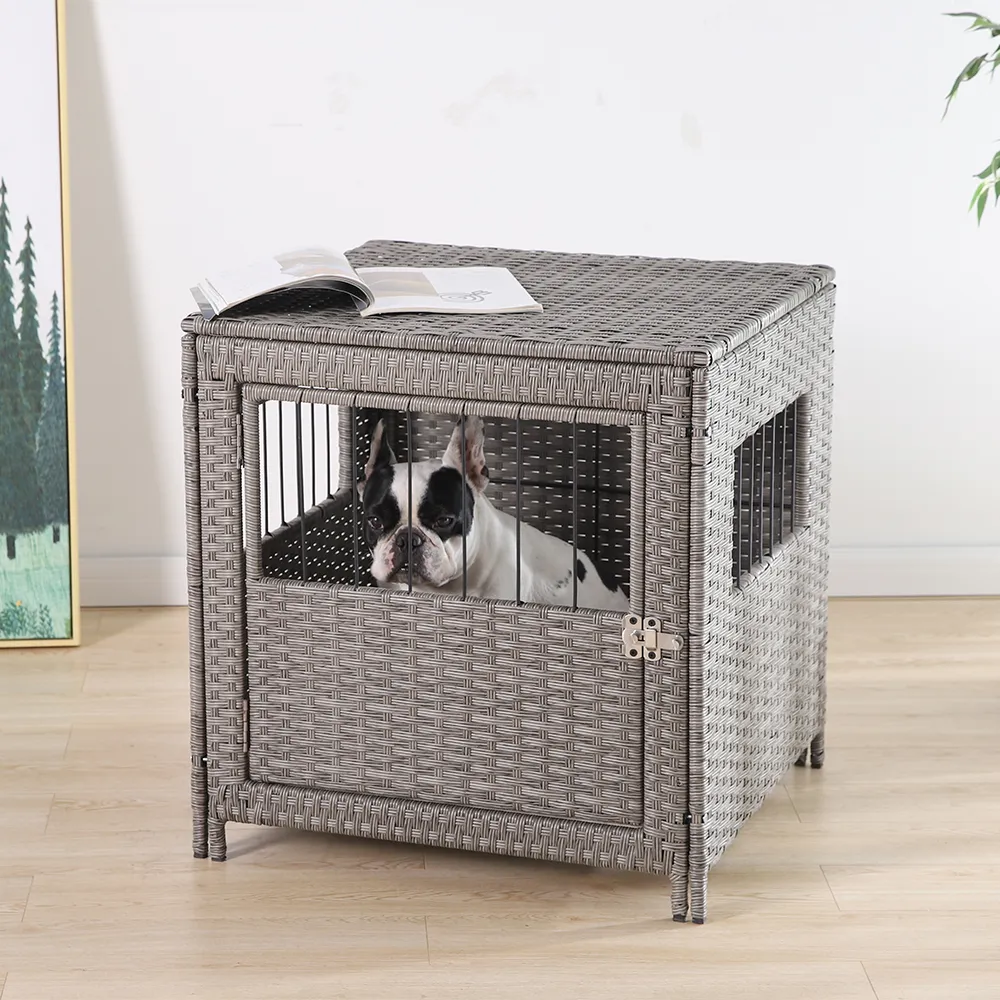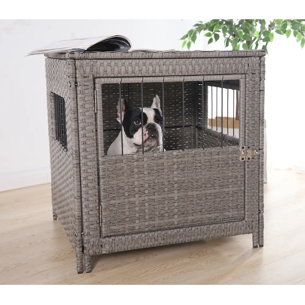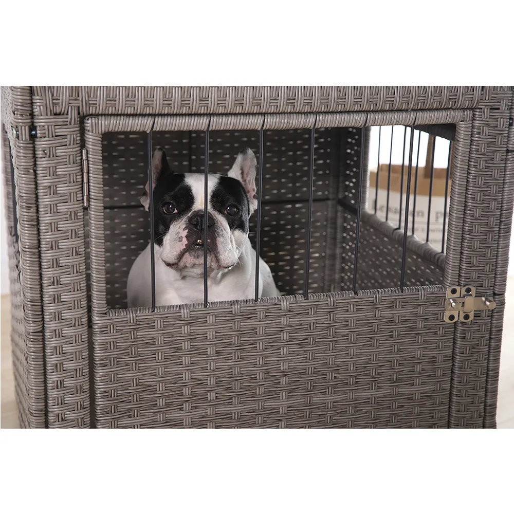 - Elegant Rattan Design: This dog cage features an elegant rattan weave that adds sophistication to your pet’s living space and seamlessly blends with your home’s aesthetics.