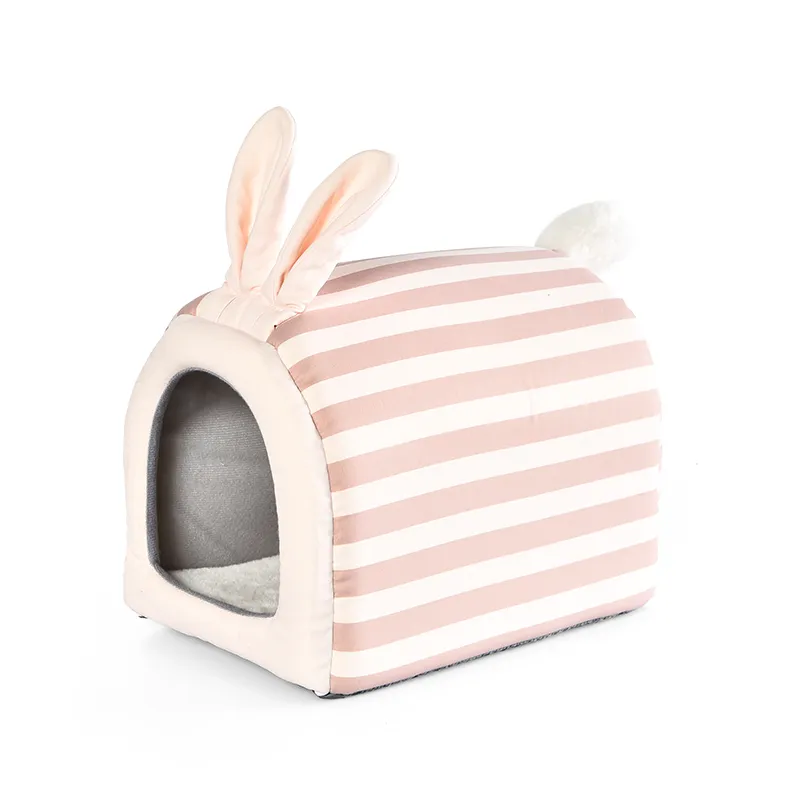 - Cozy Rabbit Cave Bed You will appreciate the cozy cave design of our bunny bed. This enclosed space provides a sense of security and comfort for your pet, mimicking their natural burrowing instincts. The cave design helps reduce stress and promotes better sleep.