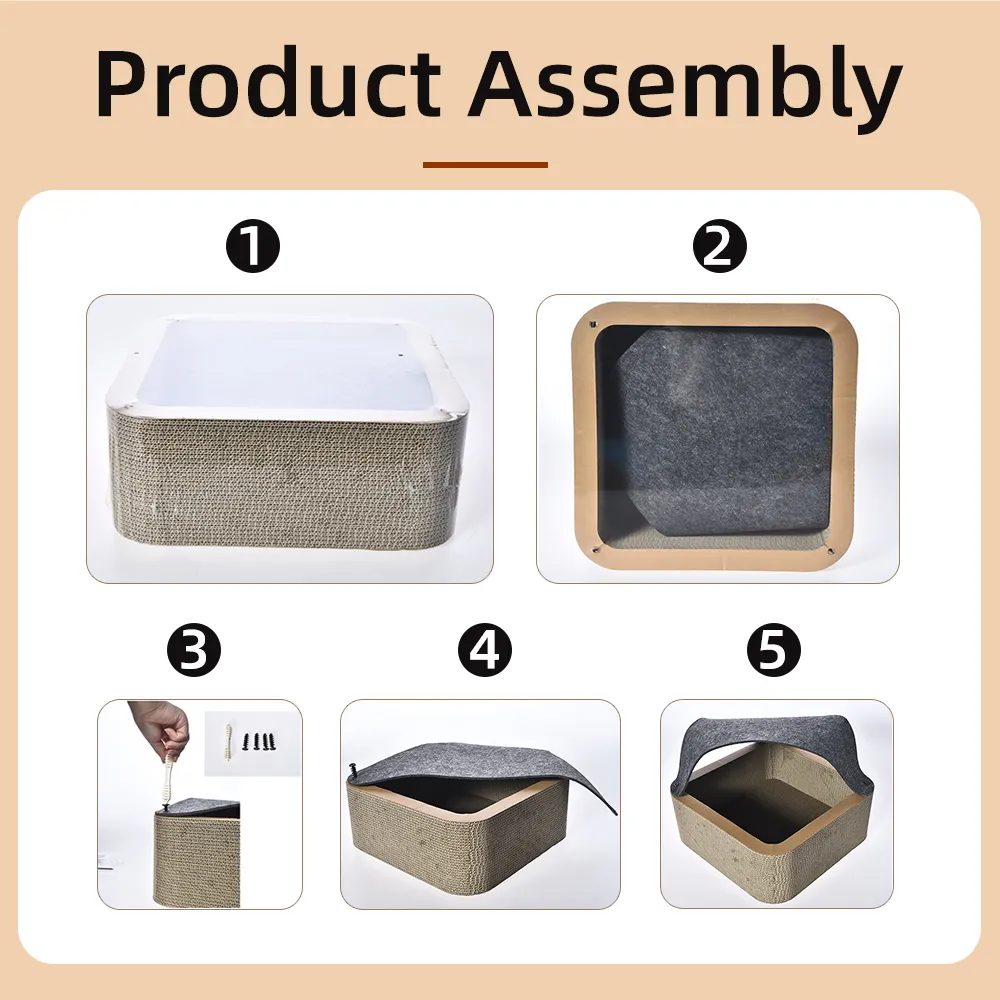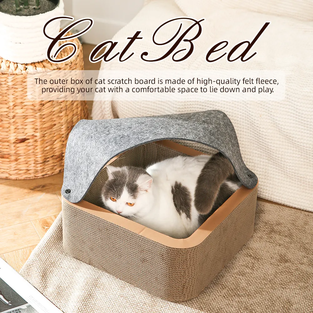 Cardboard Cat Bed Play Sleeping Corrugated Paper Box Pet Cat Board With Felt Cover