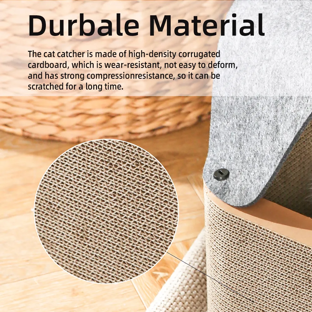 This Cardboard Cat Bed features a natural, eco-friendly design with a plush felt cover for added comfort. It doubles as a scratcher and a cozy bed, offering a durable, easy-to-maintain solution for your pet’s lounging and playtime needs.