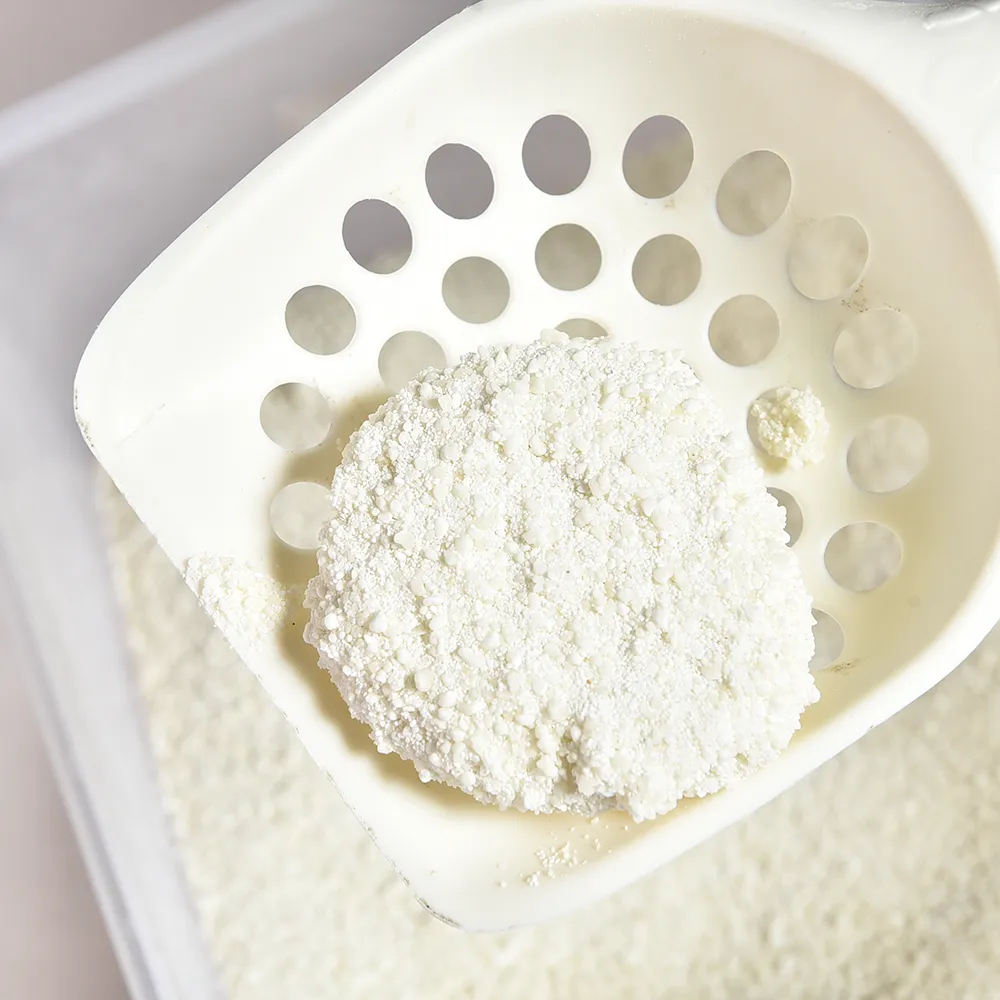5. Fast Clumping for Easy Scooping This tofu cat litter forms fast and hard clumps upon contact with moisture, making it easy to scoop and clean. The clumps remain solid, allowing you to remove waste without mess or crumbling. With this cassava pet litter, maintaining the litter box is a breeze.