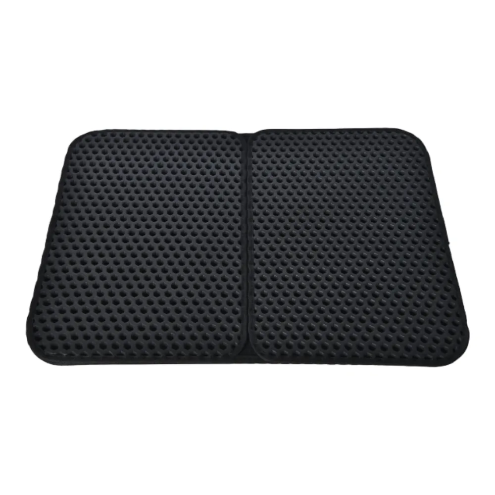 1. Dual-Layer EVA Cat Litter Mat Our cat litter box mat boasts a dual-layer design crafted from durable EVA material. This construction ensures longevity and durability, providing an effective solution for trapping litter and keeping your floors clean. With this cat litter mat double layer, you can efficiently contain litter messes and maintain a hygienic environment.