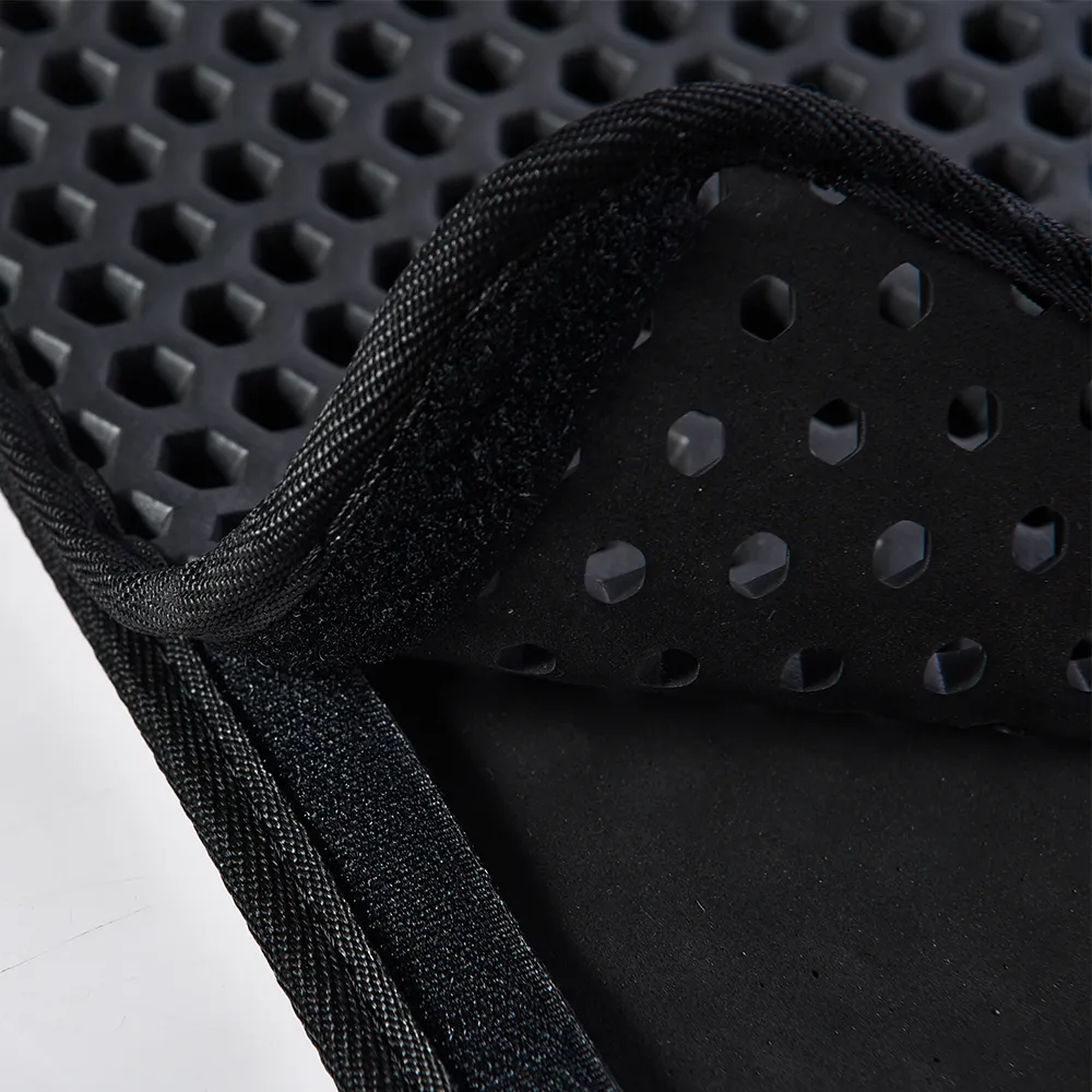 2. Honeycomb Grid with Spacious Holes Featuring a honeycomb grid pattern with spacious holes, our cat litter pad effectively traps litter as your cat exits the litter box. The innovative design prevents litter scatter, minimizing the need for constant sweeping and vacuuming. With this cat litter box pad, you can bid farewell to litter tracking throughout your home.
