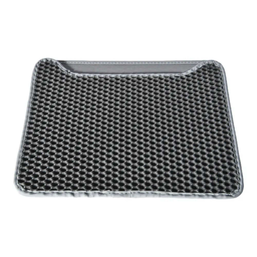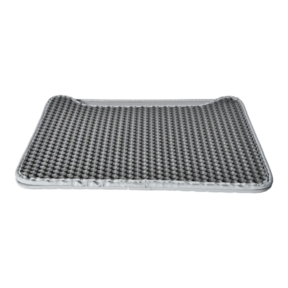 1. Double-Layer EVA Cat Litter Mat Our litter box mat features a double-layer design made from durable EVA material. This ensures durability and longevity, providing a reliable solution for trapping litter and keeping your floors clean. With this best litter trap mat, you can effectively contain litter messes and maintain a tidy home.