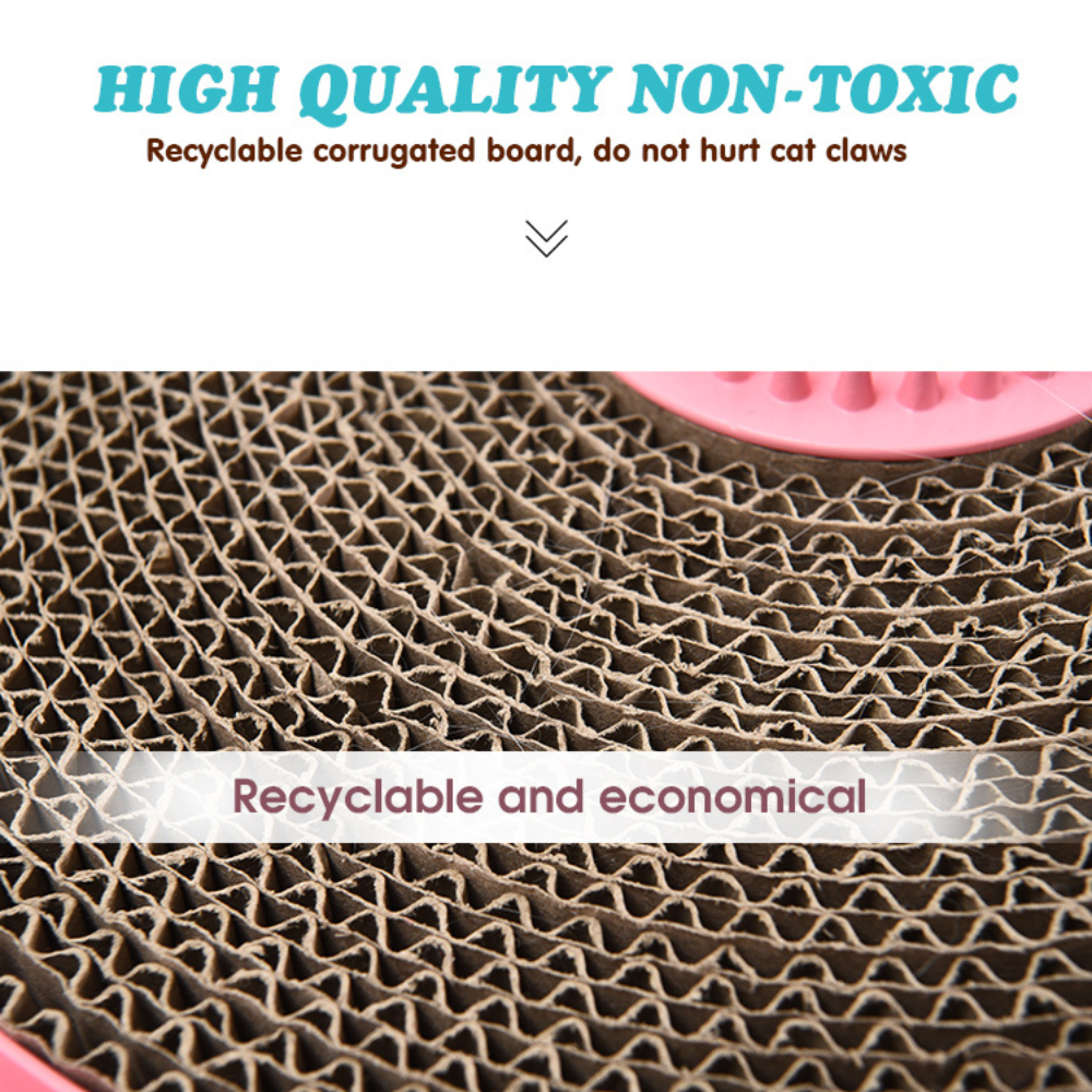 Surrounding the scratching board is a built-in plastic track with colorful balls that roll as your cat paws at them. This interactive feature engages your cat’s playful instincts, keeping them entertained for hours. It also provides physical exercise, promoting both mental and physical stimulation, which is essential for your cat’s overall well-being. - Replaceable Corrugated Scratching Surface