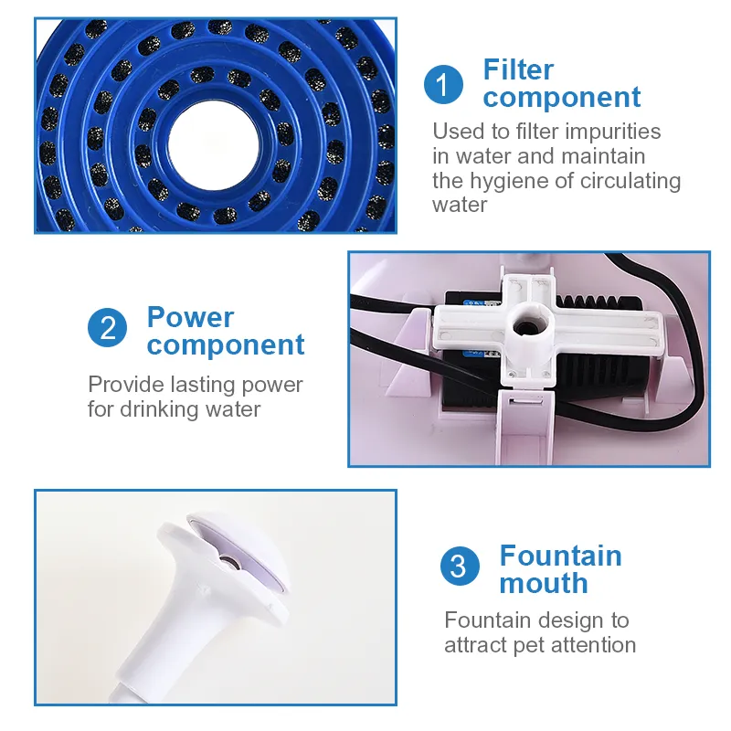 - User-Friendly Design Our cat water fountain boasts a user-friendly design. The sleek, modern look fits seamlessly into any home decor, while the sturdy construction ensures durability. This design makes it easy to clean and maintain, saving you time and effort.