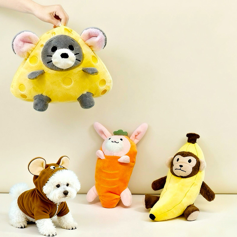 Keep your dog engaged and stress-free with our latest collection of whimsical plush characters, including the Cheese Mouse, Bunny, and Monkey. Designed to satisfy a dog’s natural curiosity, these toys are the perfect solution for solo play and anxiety relief.