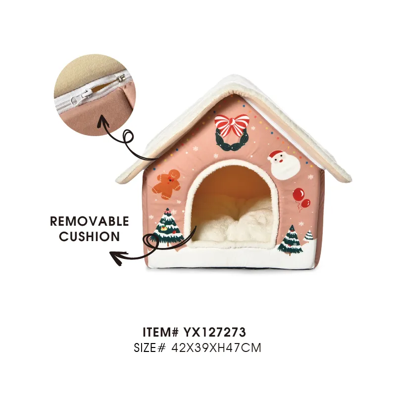 1. Festive Delight: Treat your pup to the holiday spirit with our Christmas-themed dog house bed. Designed to resemble a charming holiday cottage, it adds a touch of festive cheer to your home decor. Your dog will love having their own little Christmas retreat.