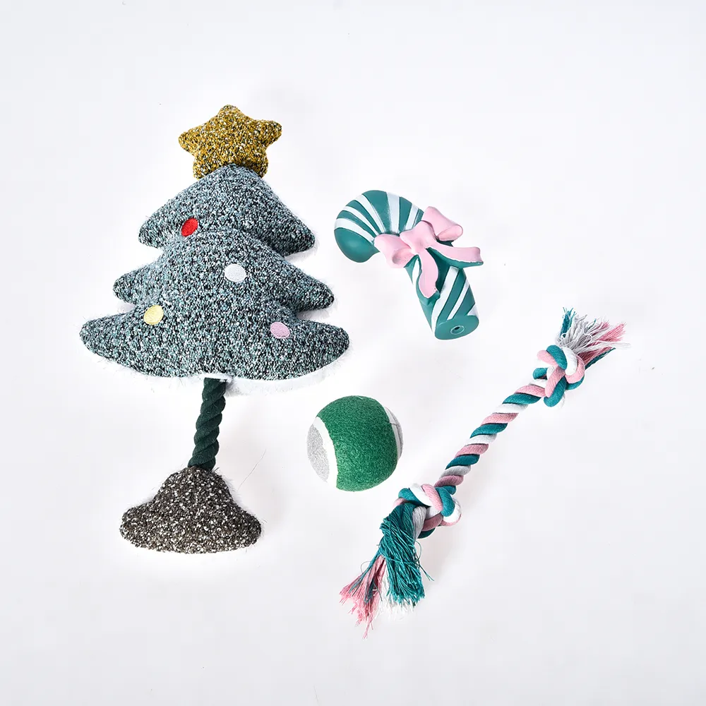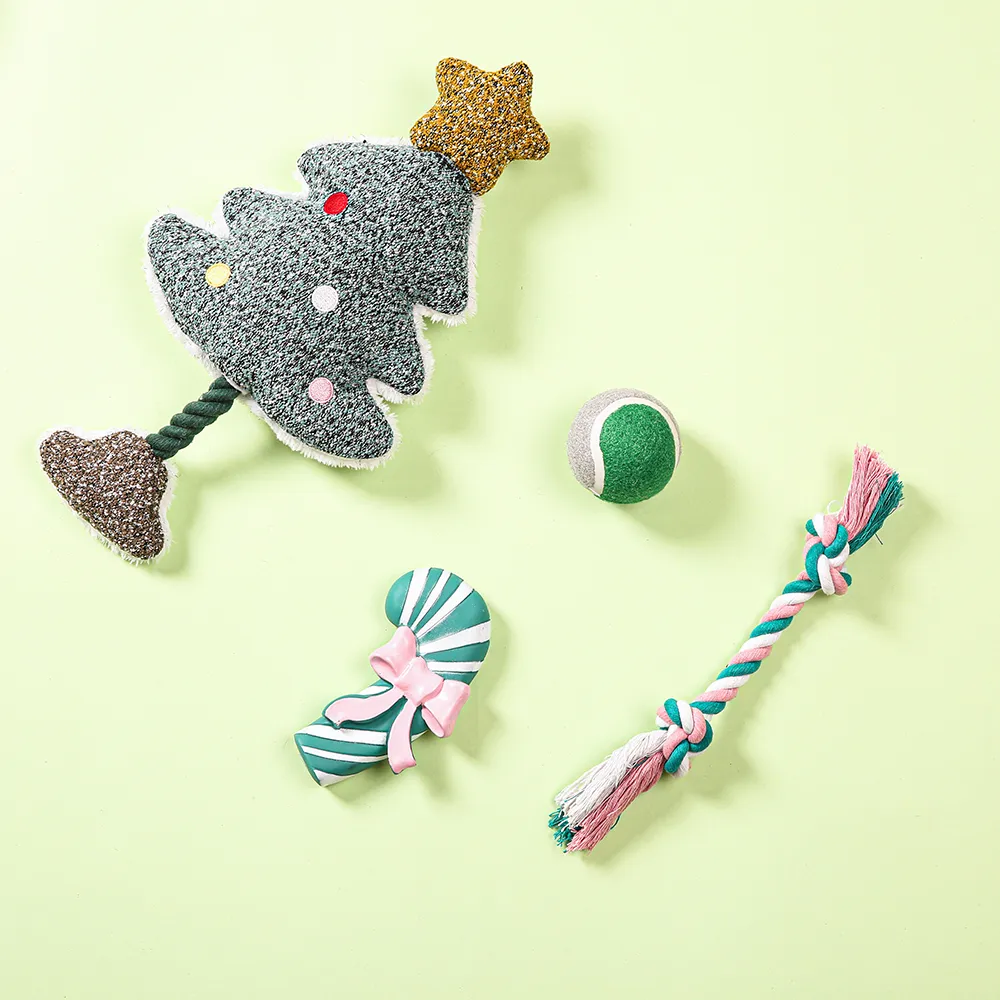 - Complete 4-Piece Toy Set: This Christmas Dog Toy Box includes four different toys: a plush toy, a durable vinyl toy, a bouncy tennis ball, and a cotton rope toy. These toys are designed to offer variety and excitement, keeping your dog entertained throughout the holiday season.