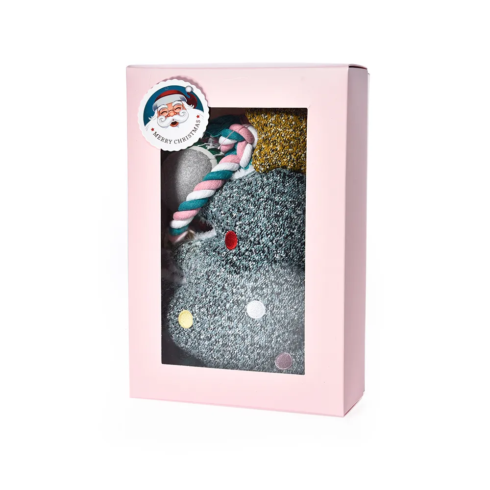 Make your dog’s holiday season extra special with the Christmas Dog Toy Box, a 4-piece gift pack that includes plush, vinyl, and rope toys, providing endless fun and engagement.