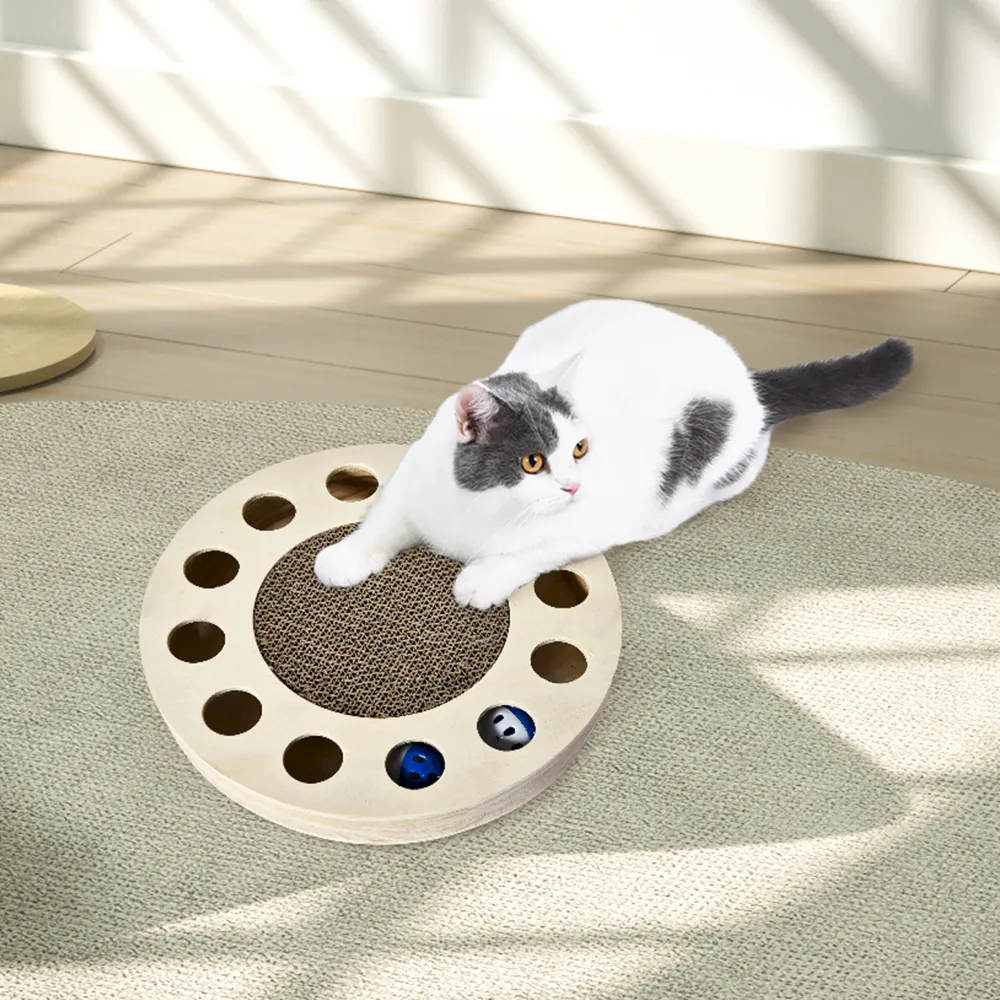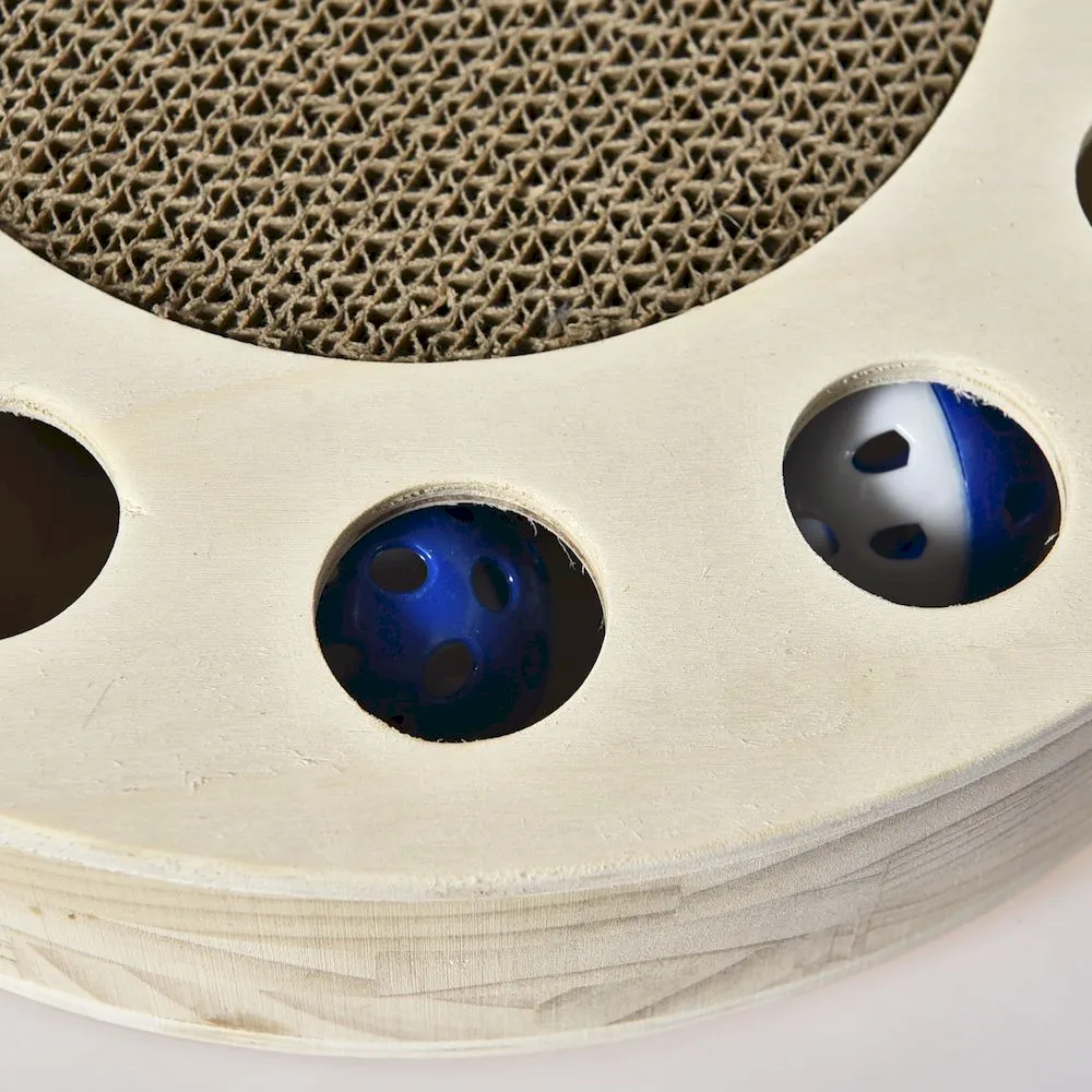 2. Interactive Play with Rolling Ball. Enhancing the playfulness of the scratch toy, we’ve incorporated a rolling ball. This interactive feature adds an element of fun and engagement for your cat. As your feline friend scratches, paws, and interacts with the corrugated board, the rolling ball provides additional entertainment, promoting physical activity and mental stimulation.