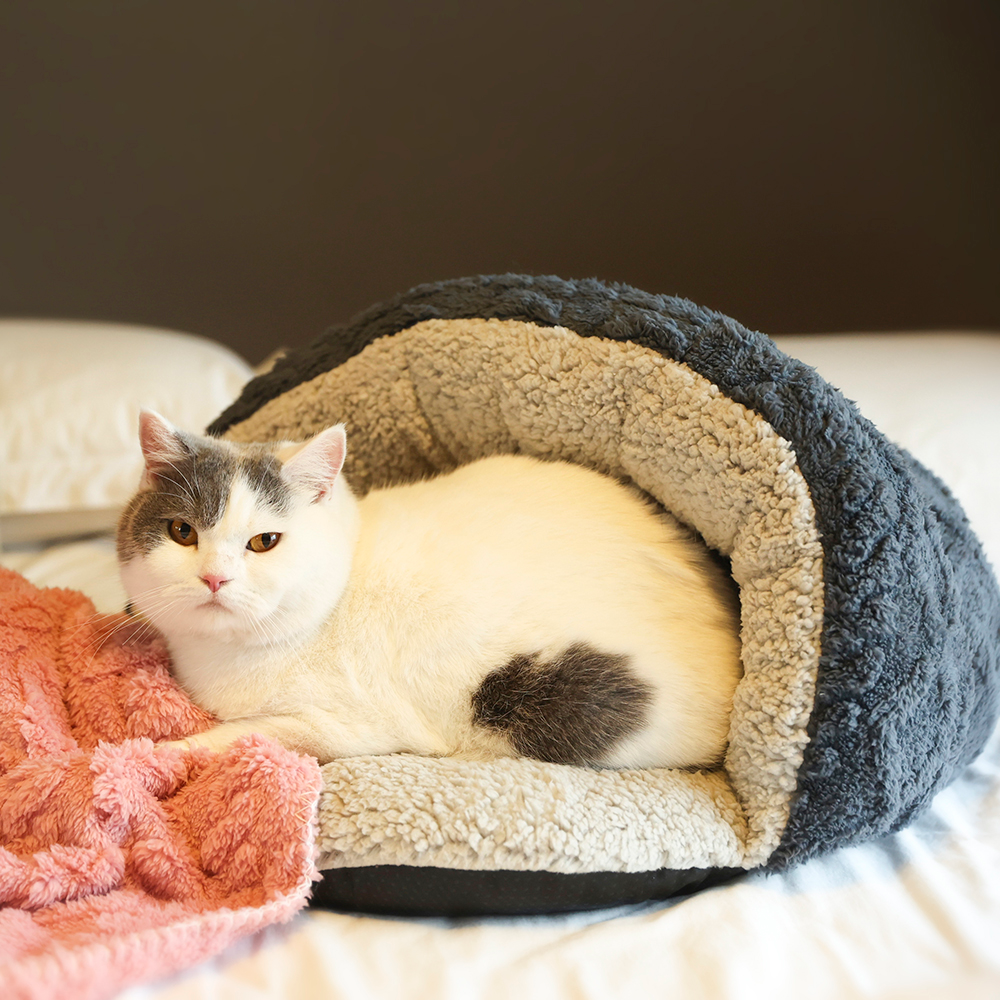 - Sumptuous Texture with Jacquard Design: Moving on to the sumptuous details, our cat cave bed features the texture jacquard series and a thickened design for added plushness and comfort. This ensures a snug, warm embrace, creating the perfect retreat for your furry friend.