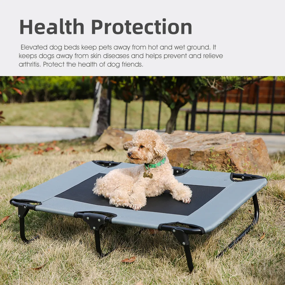 Elevated Design for Comfort Our elevated outdoor dog bed keeps your pet off the ground, providing better airflow and a cooler resting place. This design helps reduce joint pressure and keeps your pet comfortable even on warm days.