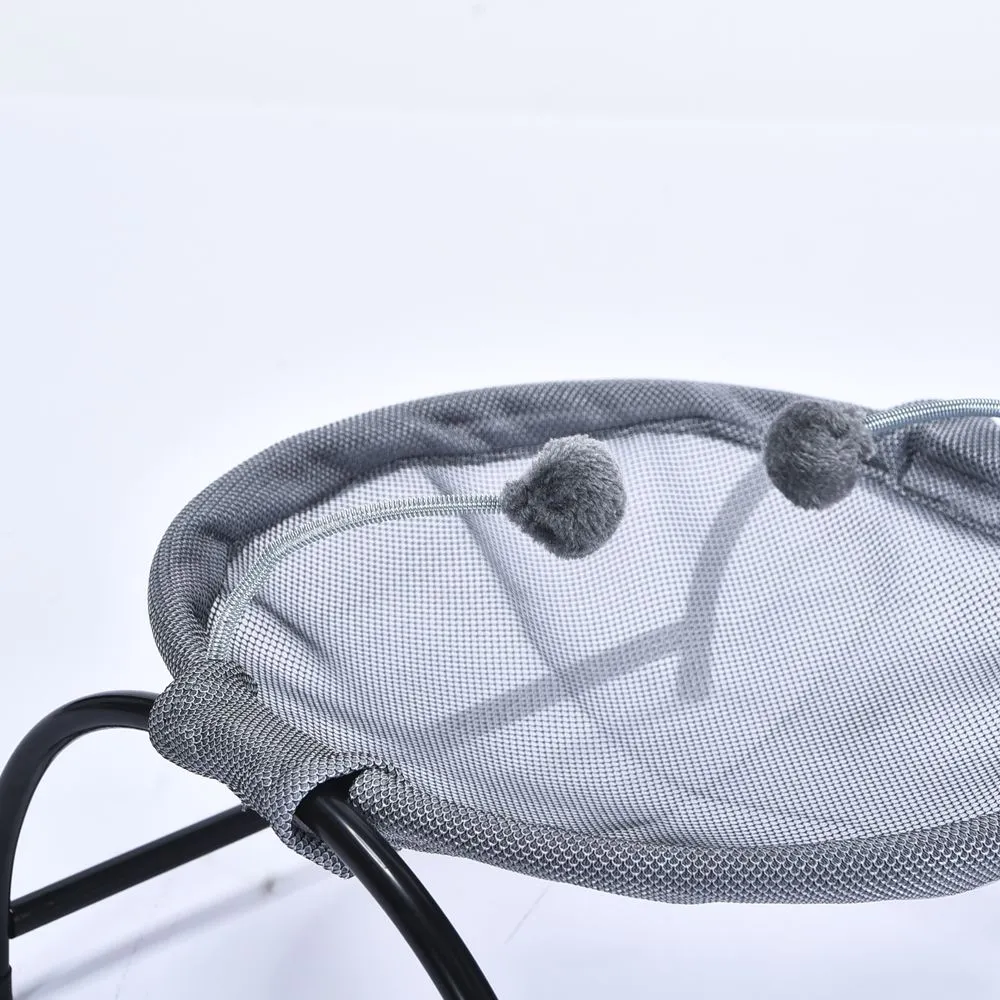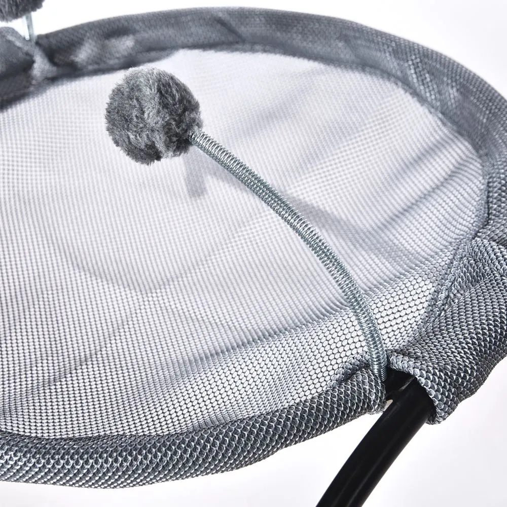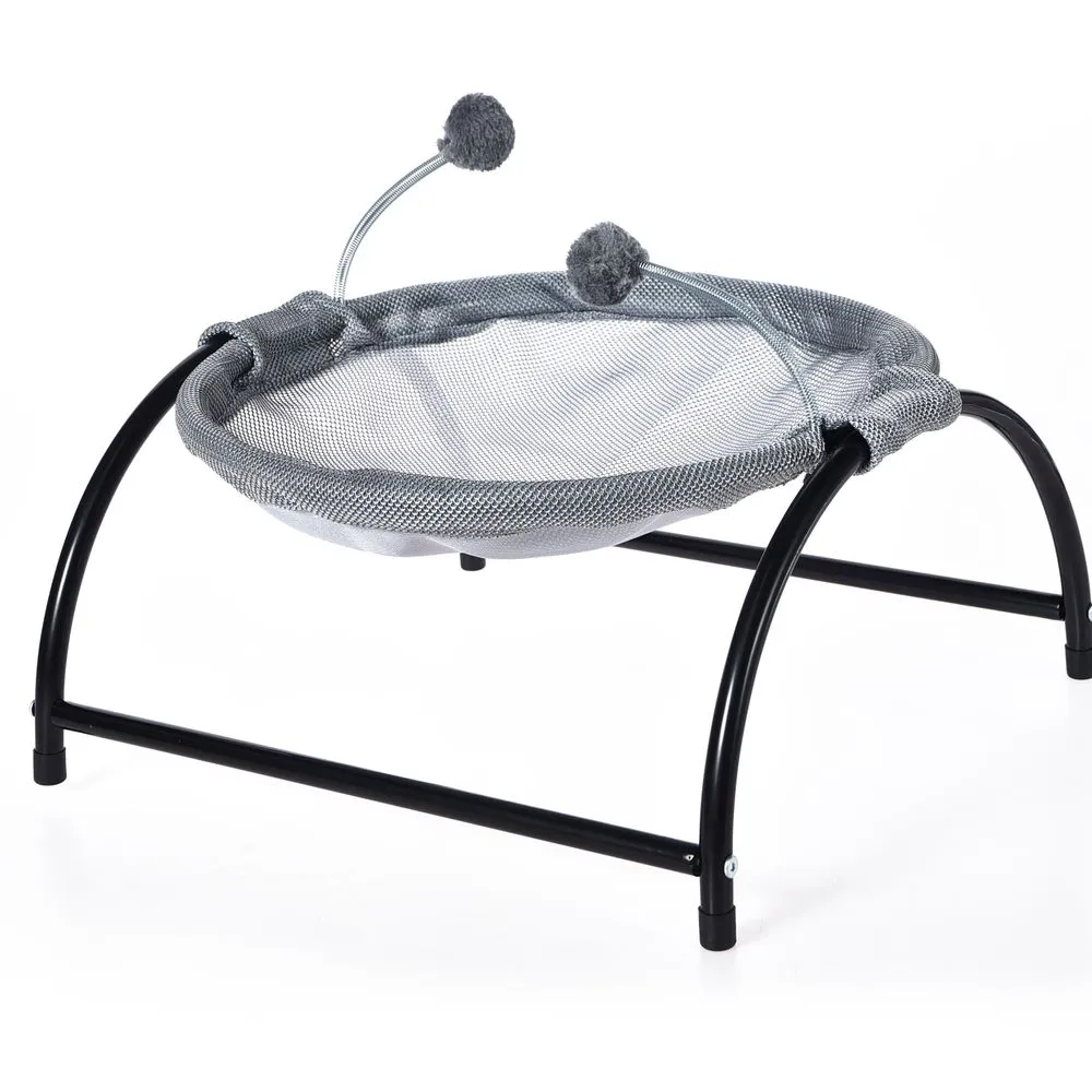 Elevated Pet Hammock with Two Hanging Balls Our dog beds design includes a fun feature with two hanging balls, providing entertainment and relaxation for your pet. The elevated design ensures your dog stays off hot, cold, damp, or hard surfaces, enhancing their comfort.
