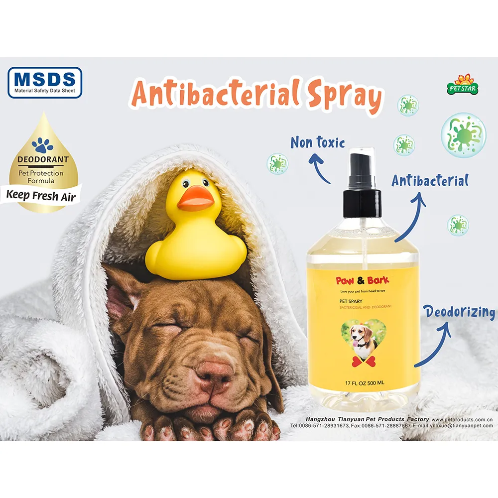 - Fresh, Long-Lasting Scent You will appreciate the fresh and invigorating scent that our pet antibacterial spray provides. The fragrance is long-lasting, keeping your pet smelling great for extended periods. This ensures a pleasant aroma around your home, enhancing the overall environment.