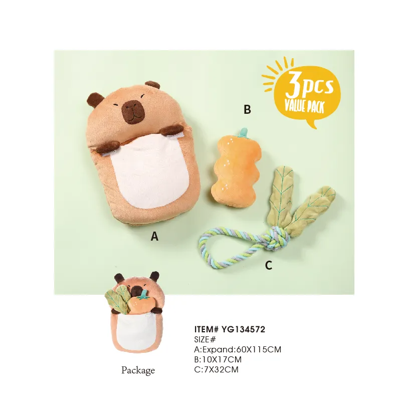 This Dog Set Toy includes three pieces??a dog blanket, a plush toy, and a cotton rope toy—making it the ultimate playtime package for your pet.