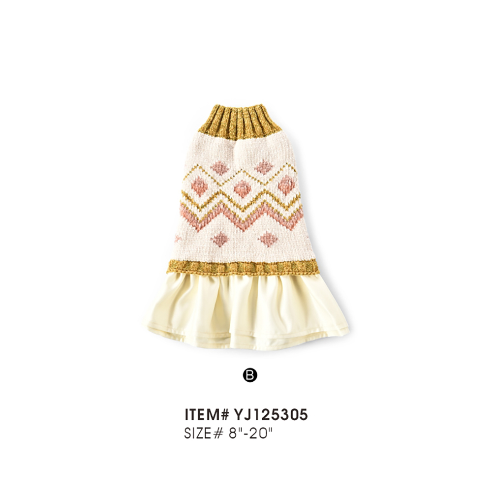 - In summary, our dog dress combines charm, cuteness, and style. Its ruffled skirt, stylish knit patterns, and customization options make it the perfect choice for wholesalers, retailers, and e-commerce businesses. Ensure your customers??pets stay both fashionable and cozy with this exceptional dog clothing. Make it part of your product catalog today!