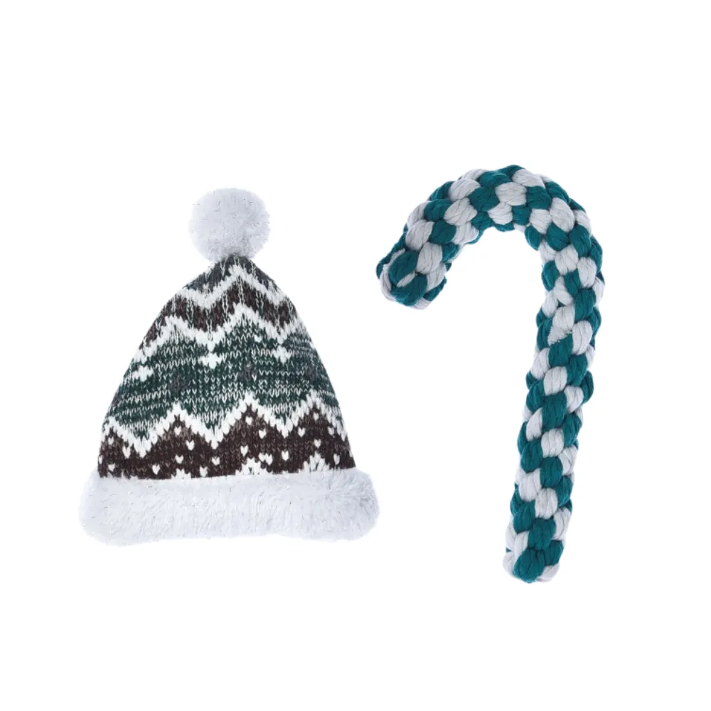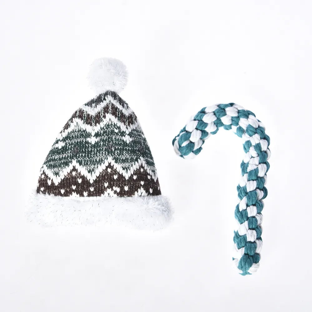 This set includes two holiday-themed toys: a plush Christmas hat toy and a strong cotton rope toy, giving your dog a variety of interactive play options. - Plush Christmas Hat for Cozy Fun