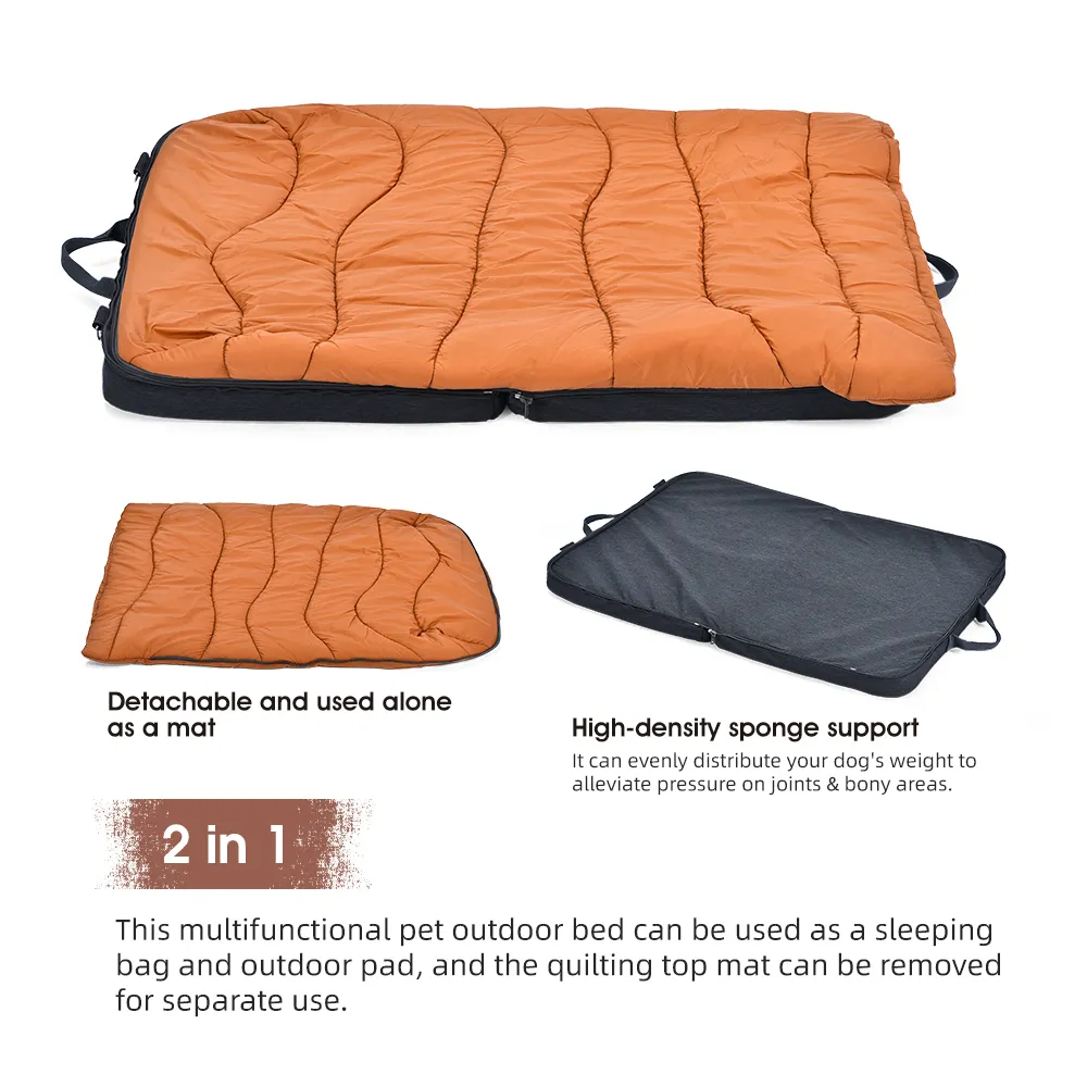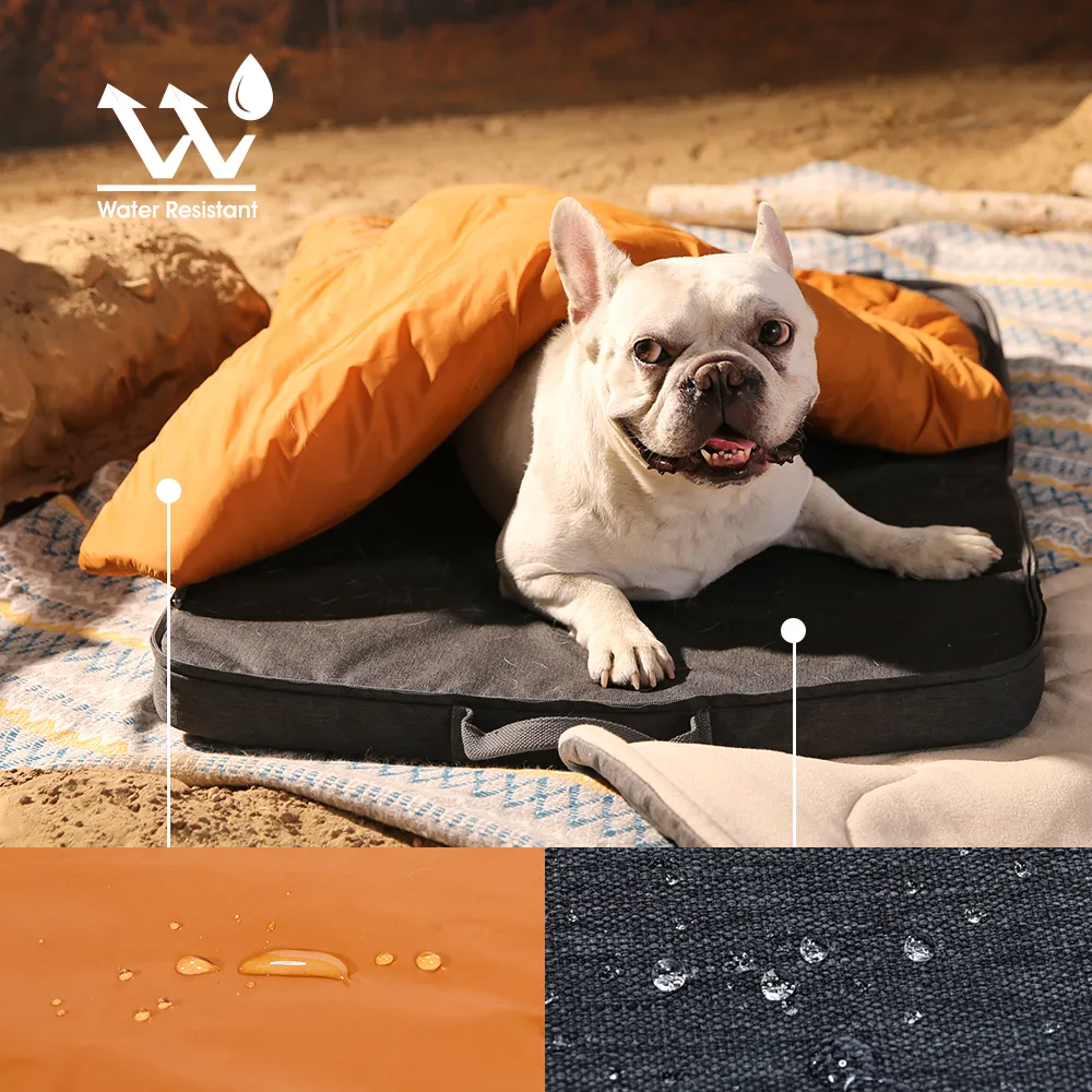 The Foldable Travel Dog Bed is the perfect outdoor solution for your pet. With eco-friendly recycled materials, waterproof protection, a removable top layer, and easy portability, it combines practicality and comfort for every adventure.