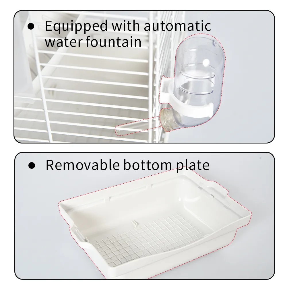 - Complete Functional Areas You will find this hamster cage equipped with all the essential functional areas your pet needs. The cage includes designated spaces for feeding, drinking, sleeping, and playing. This comprehensive setup provides a well-rounded living environment for your hamster.
