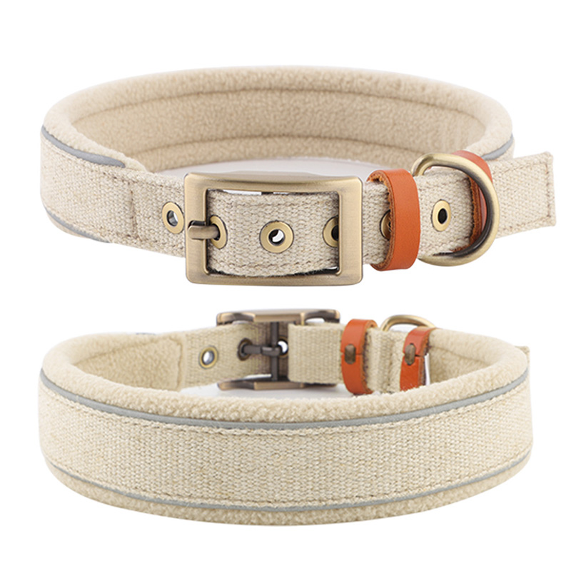 The High-end Warm Linen Buckle Pet Collar is expertly designed for comfort and health, combining natural antibacterial hemp webbing with a soft, widened polar fleece lining to protect dogs with sensitive skin.