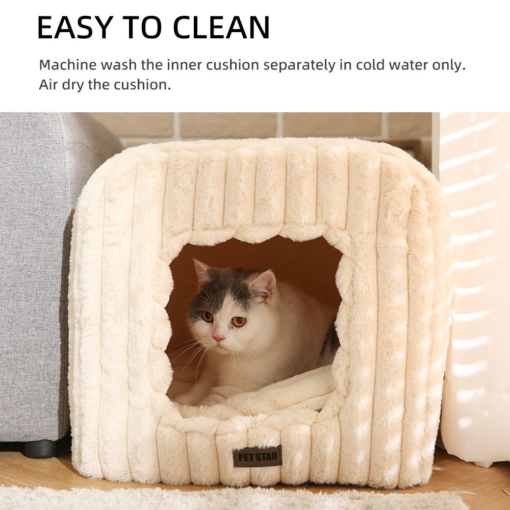 - 2-in-1 Convertible Design: This Large Cat Cave Bed effortlessly transforms from a cave-style pet bed into a sofa bed, giving your pet the option to enjoy a snug hideaway or a relaxing open space. The versatile design suits both cats and small dogs, providing them with ultimate comfort.