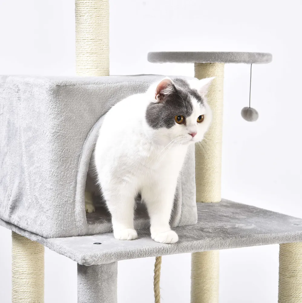2.Removable Sleeping Condo: Privacy matters to cats. Our cat tower features a removable sleeping condo, allowing cats to retreat to a secluded space when they need a break. This condo is easily accessible and can be cleaned effortlessly.