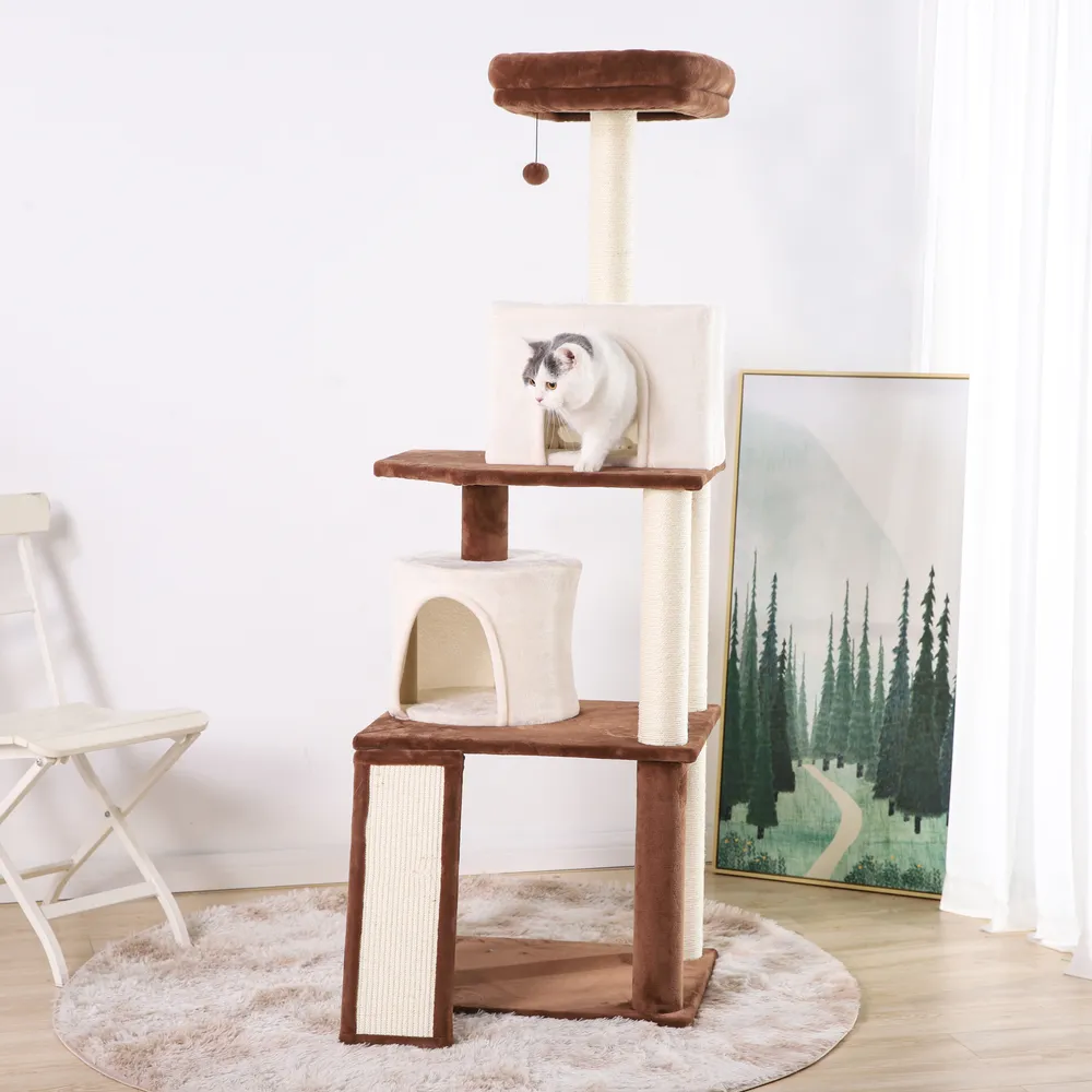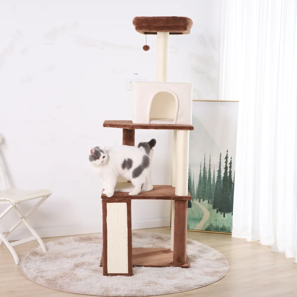 3.Sisal Post for Healthy Scratching Maintaining a cat’s natural scratching behavior is crucial for their well-being, and our cat tree includes a sturdy sisal-wrapped post, perfect for promoting healthy scratching habits. The durable sisal material ensures the longevity of the tree, even with the most enthusiastic scratchers.