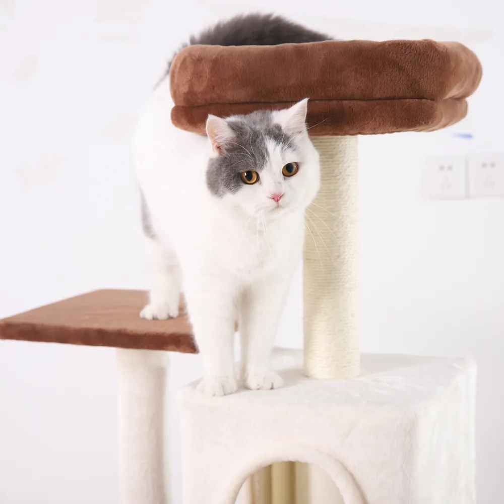3.Sisal Post for Healthy Scratching Maintaining a cat’s natural scratching behavior is essential for their well-being. Our cat tree includes a sisal-wrapped post, ideal for promoting healthy scratching habits. The durable sisal material ensures the longevity of the tree.