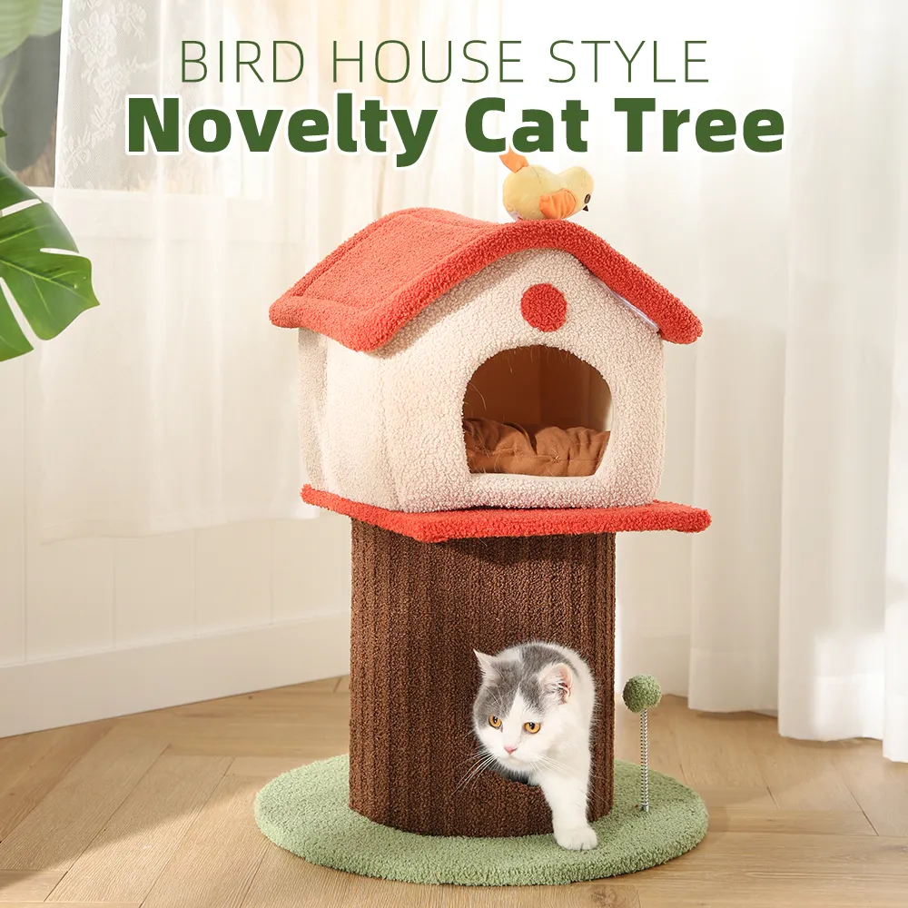 Novelty Cat Tower is the perfect blend of style, comfort, and functionality. Its adorable bird house design, combined with a cozy cat condo and durable scratching posts, makes it an ideal choice for any cat owner.