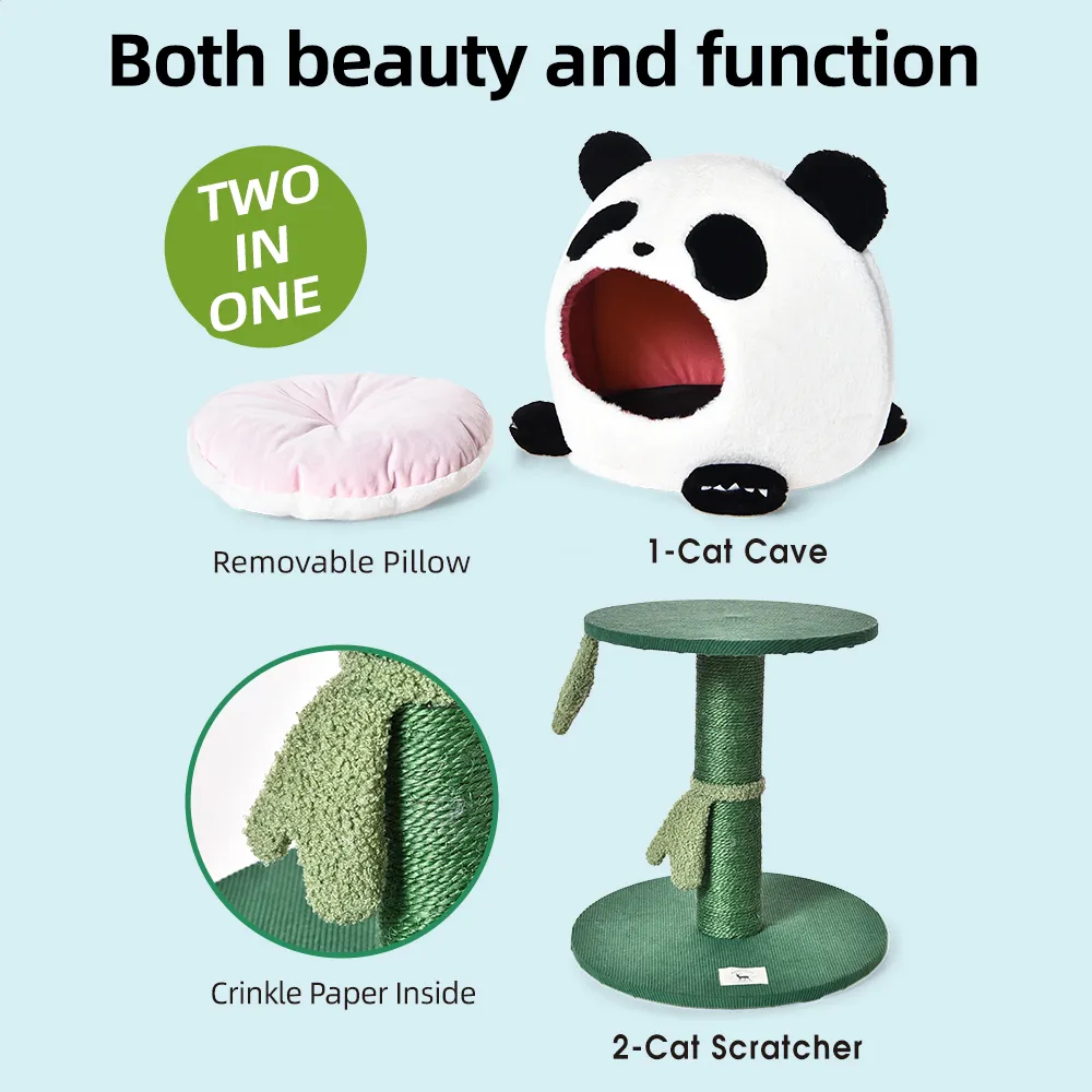 Panda Cat Tree Post Kitten Cave Condo Cute Cat Scratcher Tower