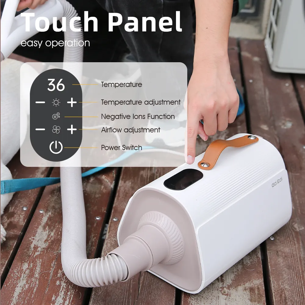 - Adjustable Temperature Range You will love the adjustable temperature range of this pet hair dryer. With a range from 36 to 60 degrees Celsius, you can easily find the perfect temperature for your pet’s comfort. This feature ensures that you can gently and effectively dry your pet’s fur without causing discomfort or overheating.