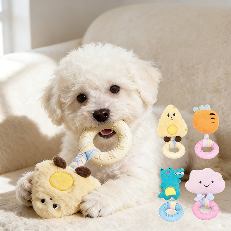 Keep Your Home Safe & Your Pup Happy! 🐾 Stop destructive chewing with our 2-in-1 Squeaky Plush Chew Ring. Featuring a tough TPR teething ring and soft, shed-resistant plush filled with plump PP cotton, this toy is the perfect “anti-boredom” solution. Safe, durable, and irresistibly squeaky—it’s the ultimate interactive gear for teething puppies and bored dogs alike.