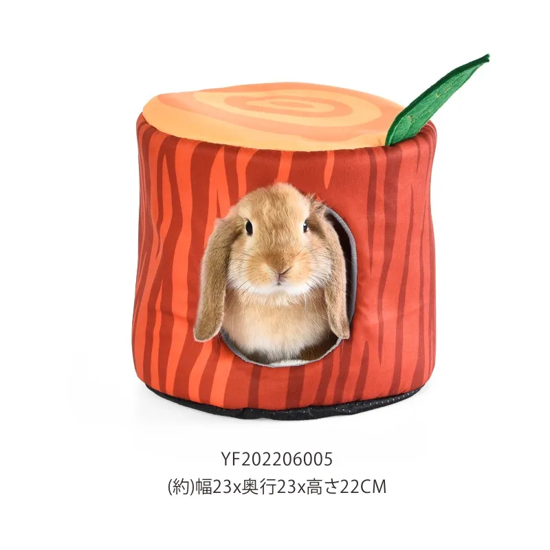 - Unique Tree Stump Shape You will love the unique tree stump shape of our rabbit house bed. This whimsical design adds a touch of nature-inspired charm to your pet’s living space, making it a delightful addition to any home. The tree stump shape also provides a snug and secure environment for your rabbit to hide and relax in.