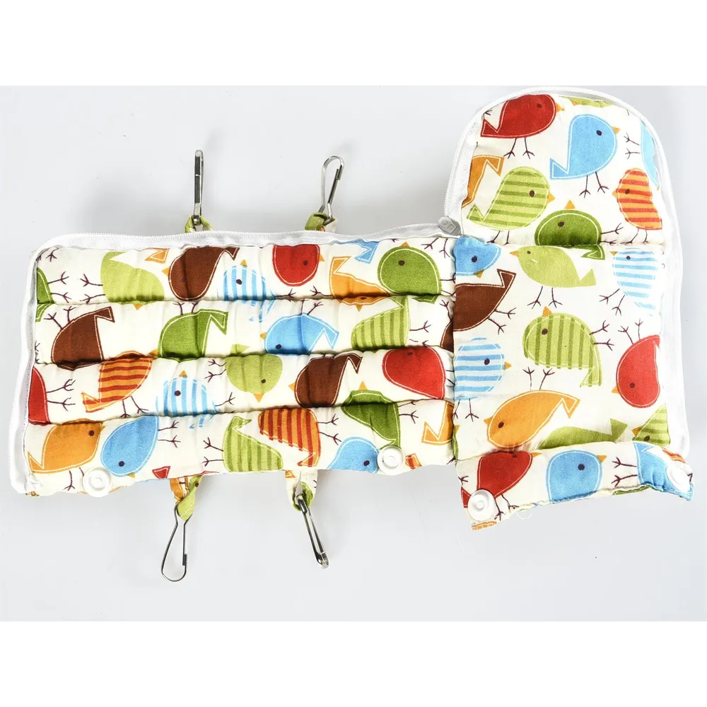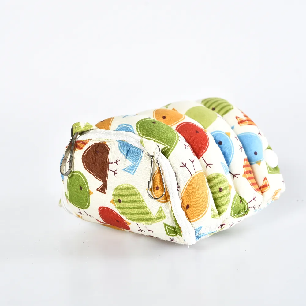 This small animal bed combines a cozy cave design with a convenient zipper and snap button assembly, plus metal hooks for easy hanging inside cages.