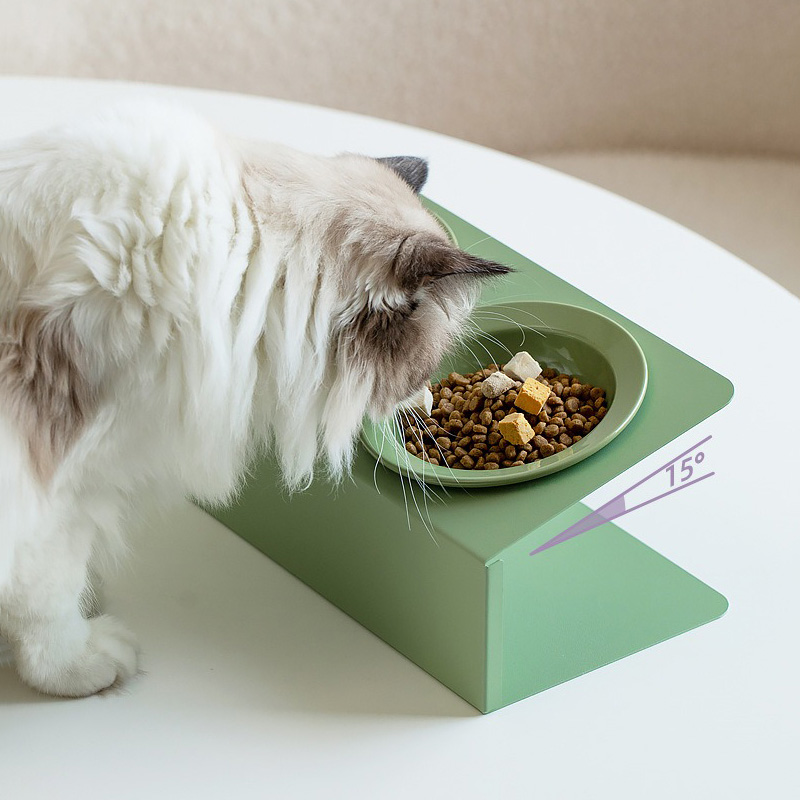 For a more comfortable eating experience, pair the bowl with its unique iron stand. The stand holds the bowl at a convenient 15° tilt, making it easier for your pet to eat and reducing neck strain. Its thin, minimalist design with non-slip pads ensures the bowl stays securely in place while your pet eats.