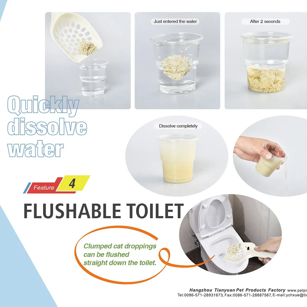 3. Flushable and Water-Soluble Our flushable cat litter dissolves in water, making it safe to flush down the toilet. This feature offers a convenient way to dispose of used litter, reducing waste and eliminating the need for plastic bags. With this sand cat litter, cleaning the litter box becomes quick and easy.
