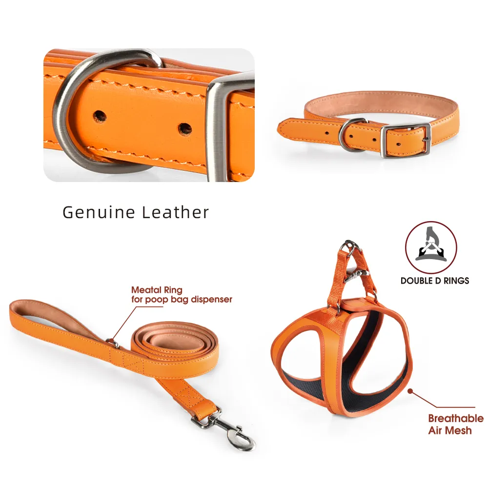 Our premium leather pet sets combine style and utility, ideal for quality-focused buyers. We offer customizable wholesale options for businesses.